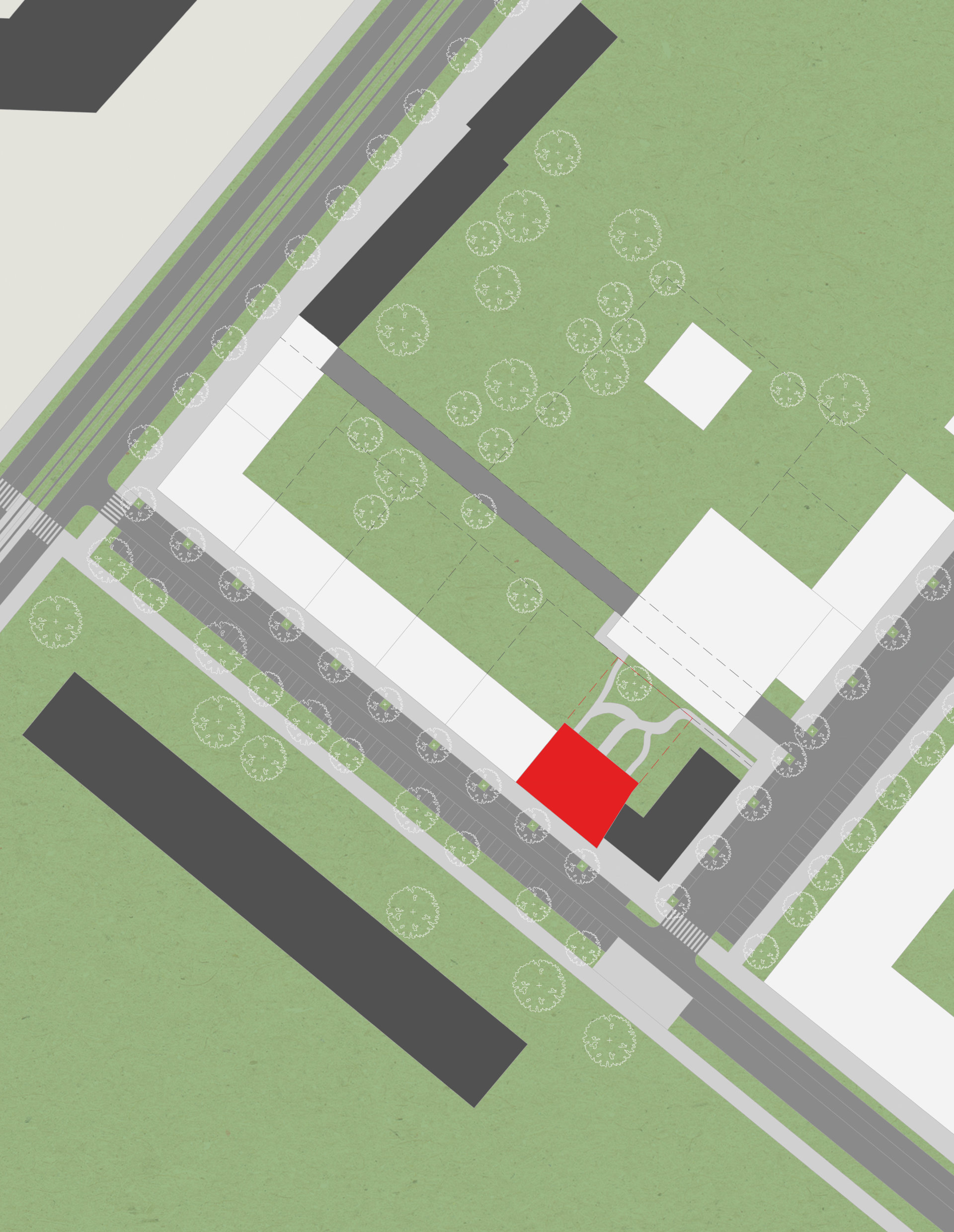 The project shows an unconventional approach to finding a building concept and the subsequent interpretation of a loose form. The intertwining structures show a concrete, even experimental approach to the classic task of designing a large house in an urban context. The jury appreciates the form of presentation and the work with the physical model.